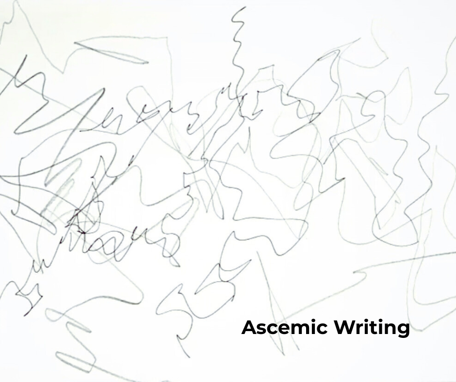 This style of mark-making is sometimes called asemic writing — marks that look like writing but carry no readable meaning.